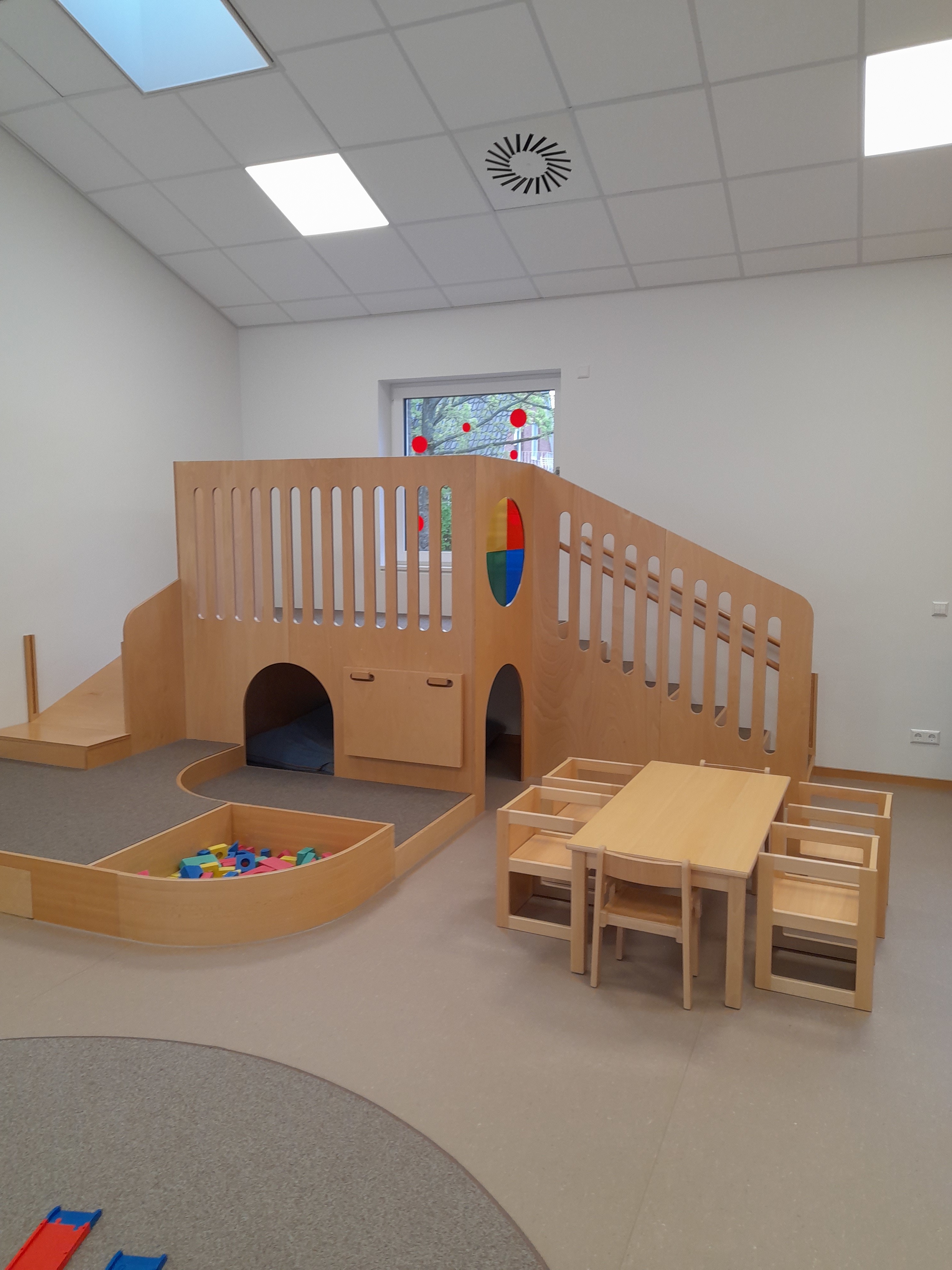 Seit November 2022 dürfen wir 15 Kinder im Alter von 1-3 Jahren in unserer neuen Krippe begrüßen. Seit November 2022 dürfen wir 15 Kinder im Alter von 1-3 Jahren in unserer neuen Krippe begrüßen.